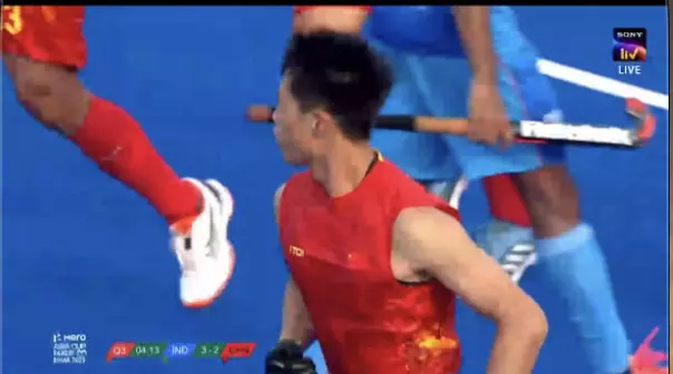 China find the back of the net again, seemingly leveling the score. However, India immediately go for a referral. The review confirms body contact in the build-up, and the goal is disallowed.