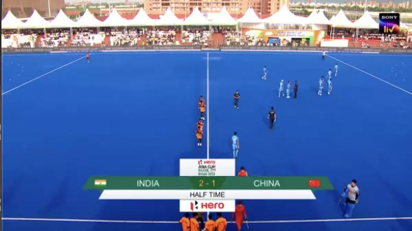 The first half comes to a close after an intense 30 minutes in Rajgir. China struck first through Du Shihao, but India fought back with goals from Jugraj and Harmanpreet to take the lead into halftime.