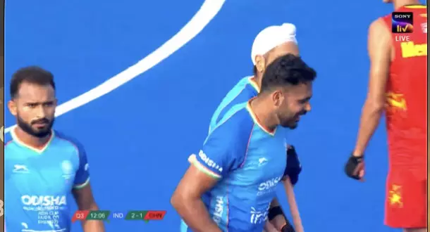 India earn a penalty corner, and Hardik sets it up perfectly for Jugraj, who converts with a controlled strike to the far post. The crowd erupts as India level the game.