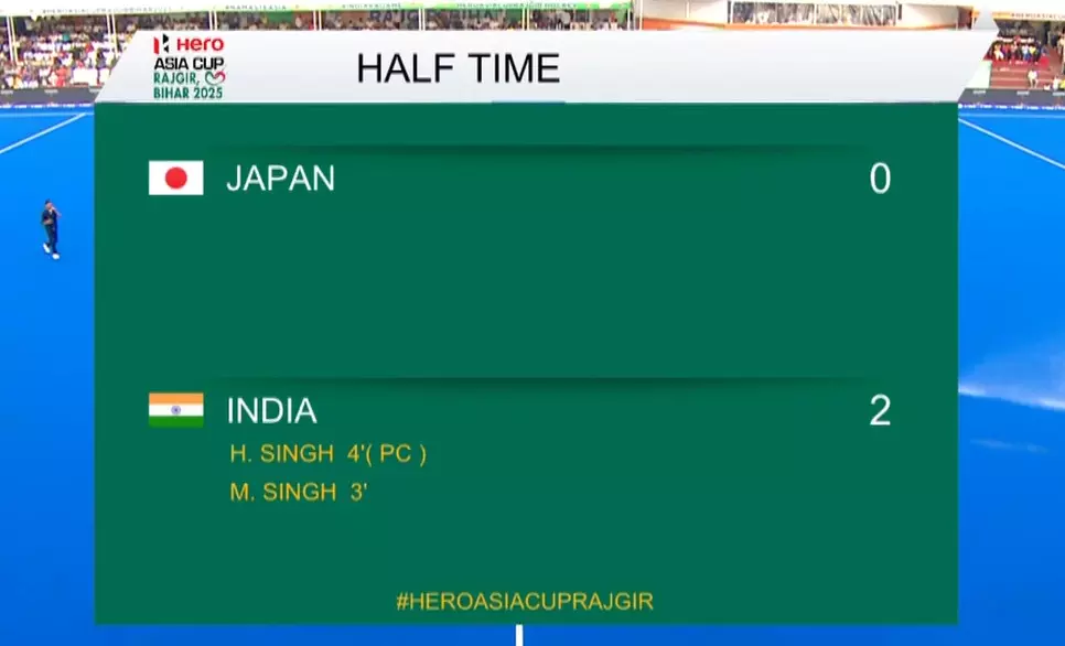 India came close to extending their lead, with one opportunity from a penalty corner and another from open play. Janan too had its chances but their defense has been commendable. Lots of action from both teams in the second quarter but no goals were added. The score remains 2-0 in India's favor at halftime.