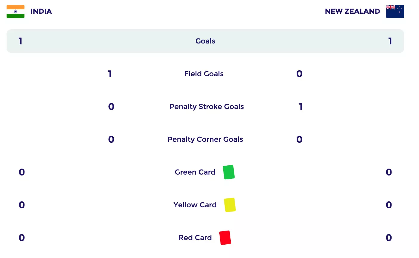 23' - NZ score through penalty stroke; IND 1-1 NZ