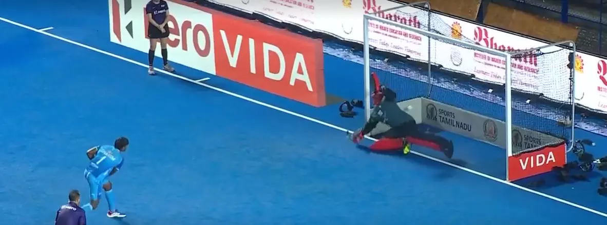 Despite the 14 goals, India's penalty corner woes haven't ceased to exist. A terrible, terrible trap this time and hence the drag flick is non-existent.