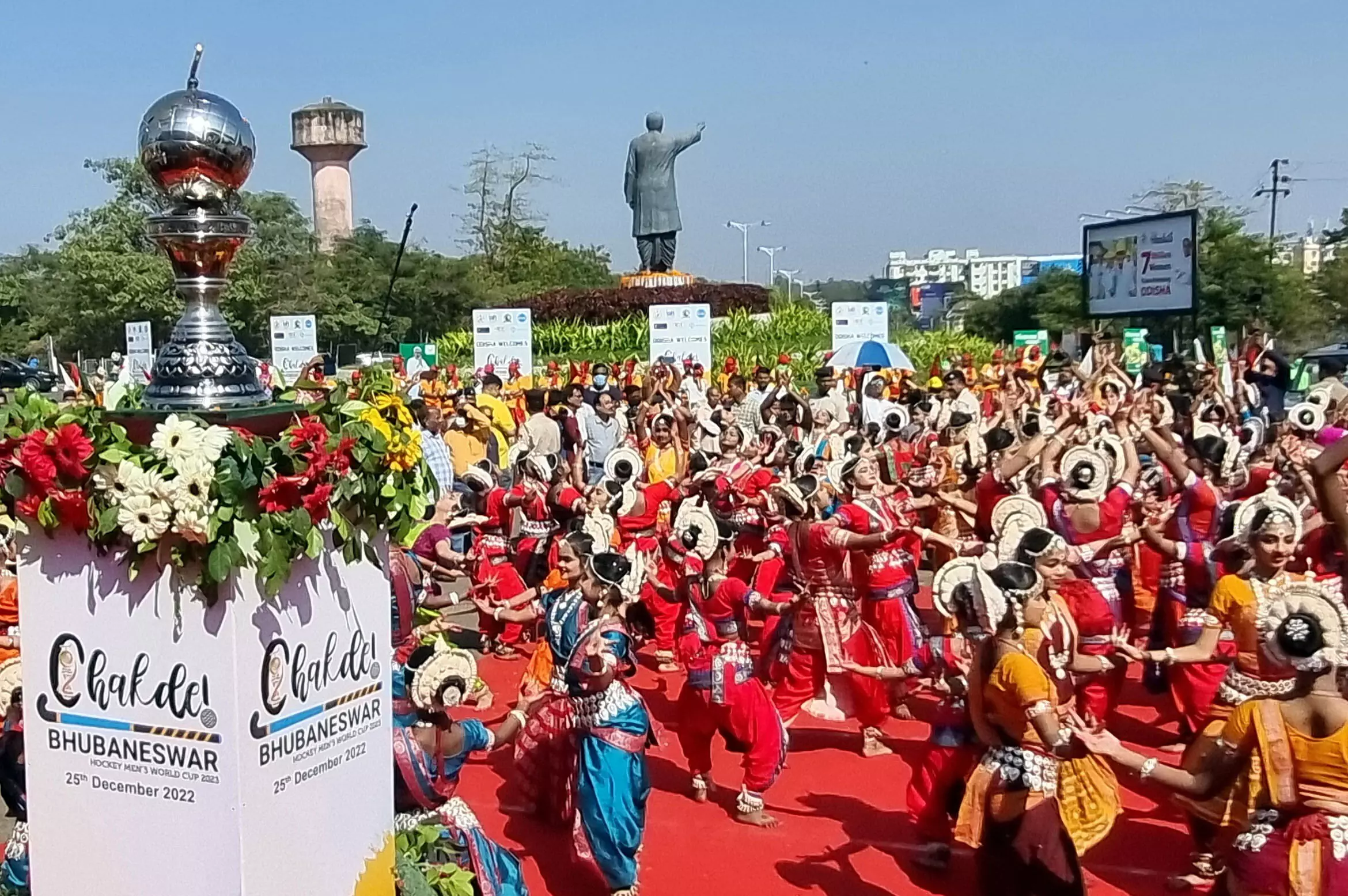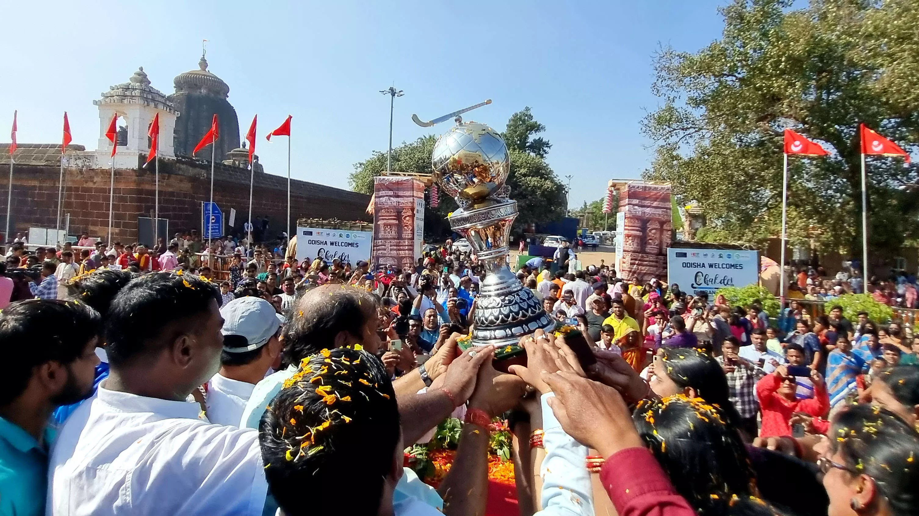 An Odissi dance recital welcoming the trophy was performed by 120 students and then the trophy took a tour of the city in a display vehicle. The trophy also reached the iconic Lingaraj temple amidst Vedic chants.