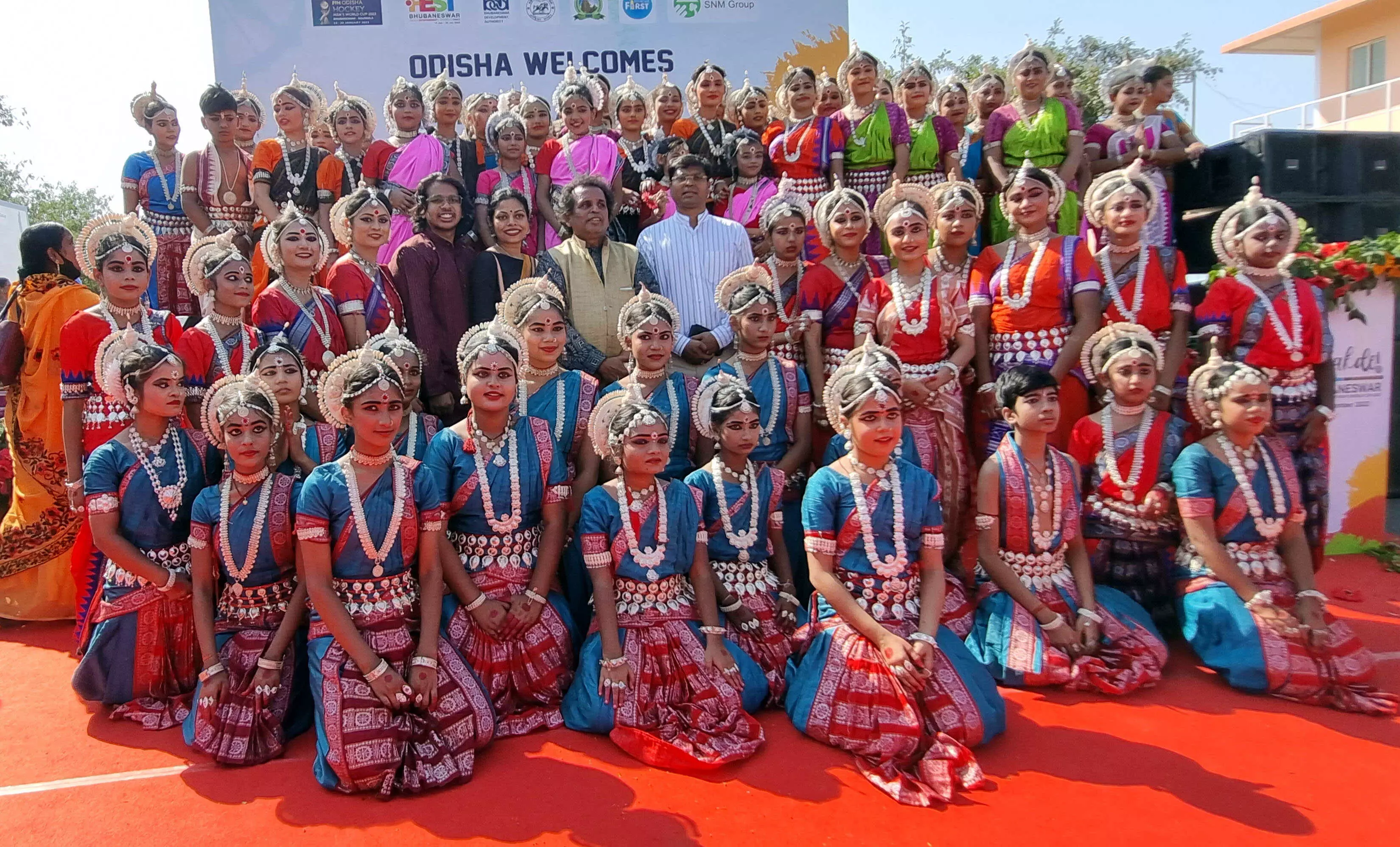 An Odissi cultural performance by 120 dancers was held near Biju Patnaik statue to accord a formal welcome. (Photo by Tazeen Qureshy)