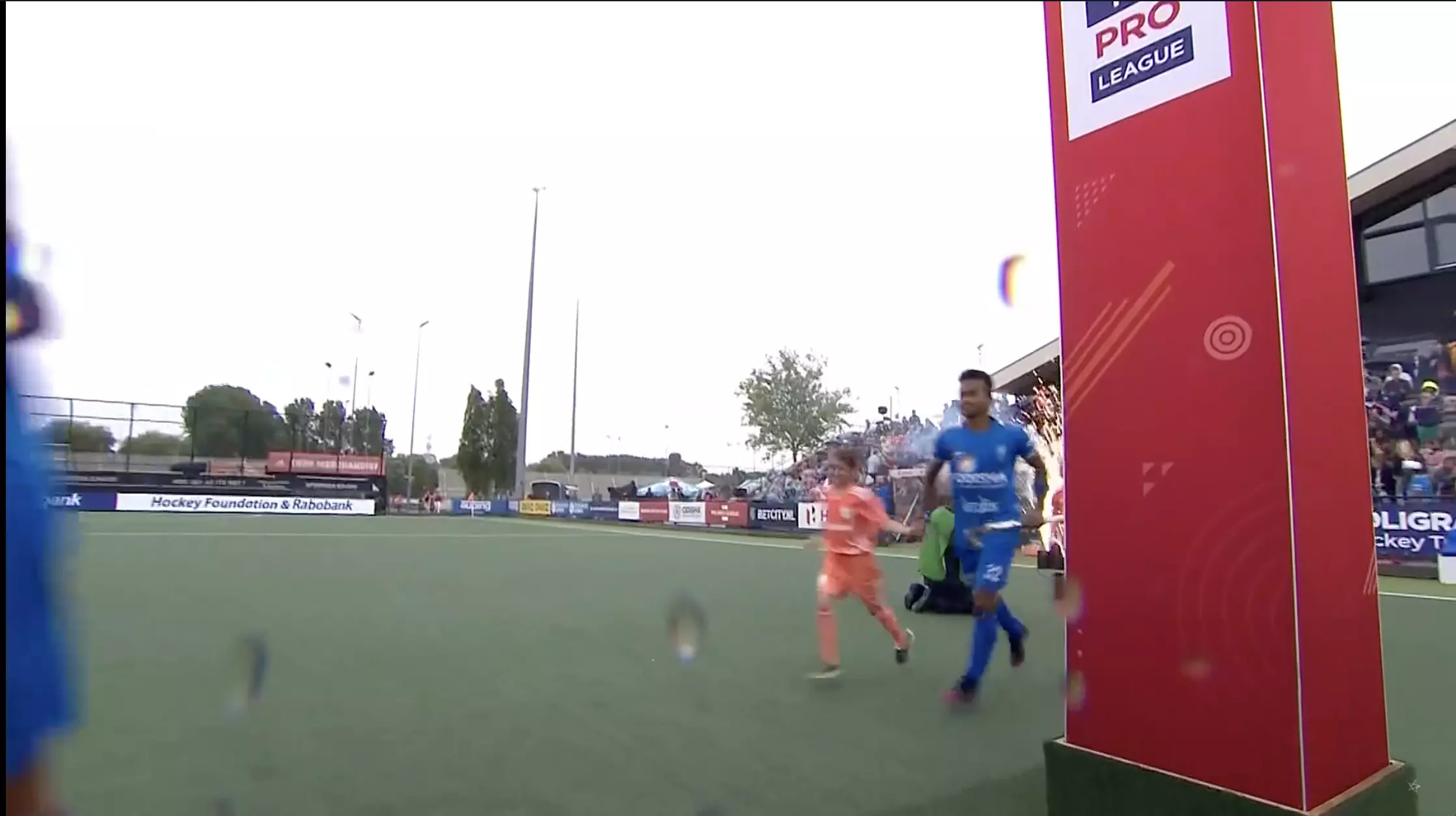 Abhishek goes with the ball from the centre and moves swiftly past the Dutch defence slotting a goal within 30 seconds of pushback!