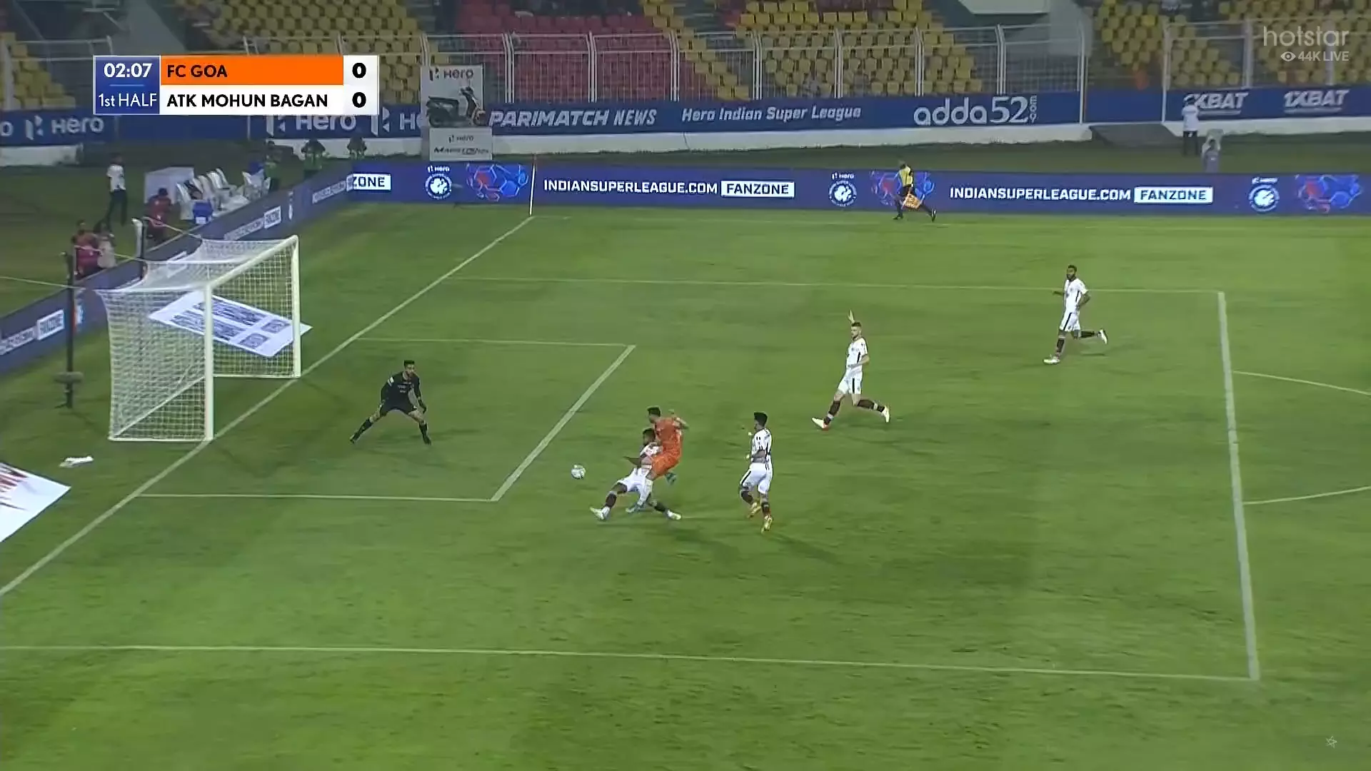 After a flurry of FC Goa attempts which saw Kaith come into action, the Mariners are trying to get one or two of their's on target.