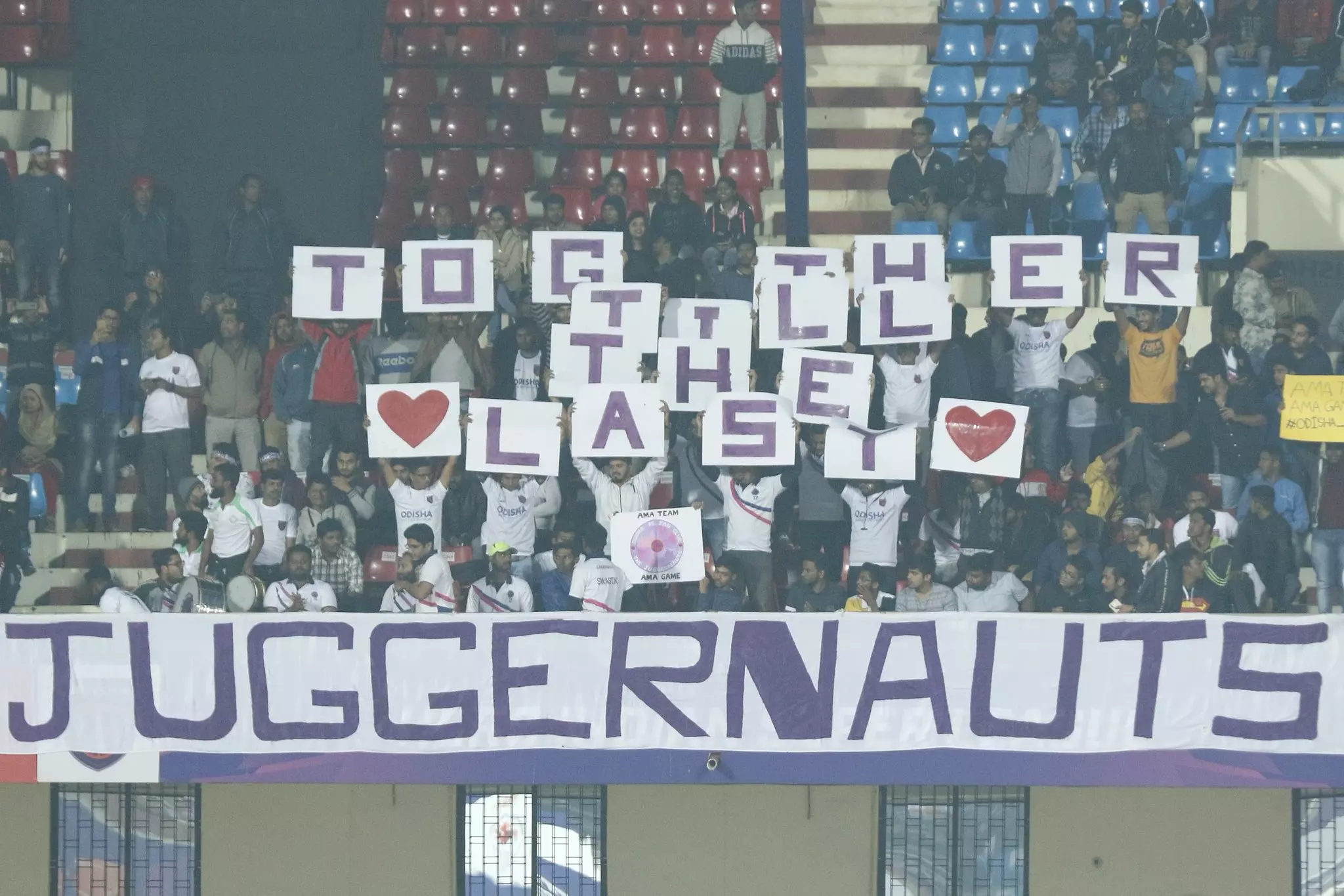Kalinga land had their own team, how could fans be far behind? A sudden realization over a champions league match between two friends who supported rival teams gave them the belief that the plan for their own team was on, and an Indian football home team will unite them over the game, where European football divided them. This is how Juggernauts were born, the fan club of Odisha FC. The name is derived from Jagannātha i.e. the "world-lord", combining jagata ("world") and natha ("lord"). Juggernaut is also defined as a large powerful force or organization that cannot be stopped, and as a fan club, they want to be the largest supporter group whose voices cannot be stopped. A long way ahead, but the start is what matters.