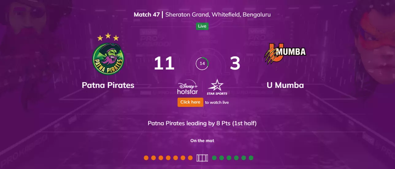 Patna Pirates v/s U Mumba - 7:30 pm IST