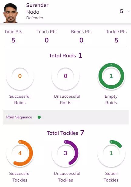 5 minutes remain in the contest and the Yoddhas have an eight-point lead, thanks to Surender Gill. Both Gill and Pardeep are also eyeing their respective Super 10s.