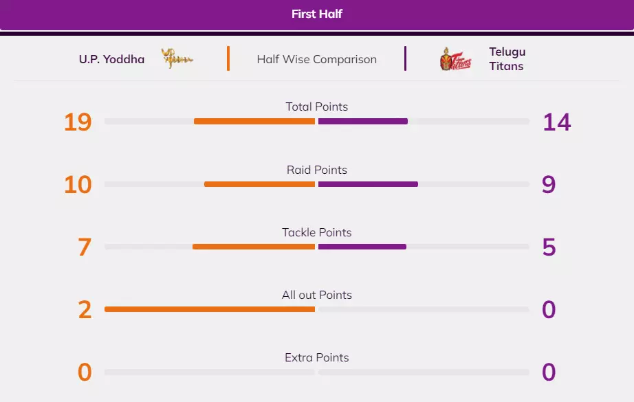 UP Yoddha's half undoubtedly. The Titans have done well in parts but the Yoddhas have been the superior side, thanks to their defence.