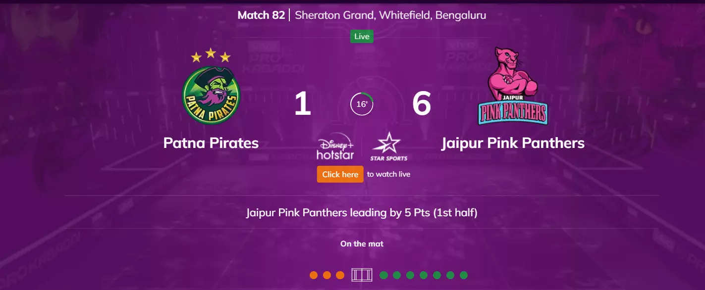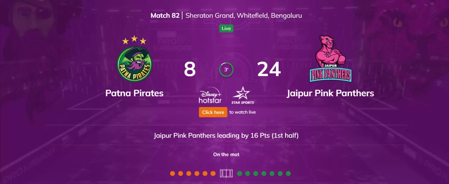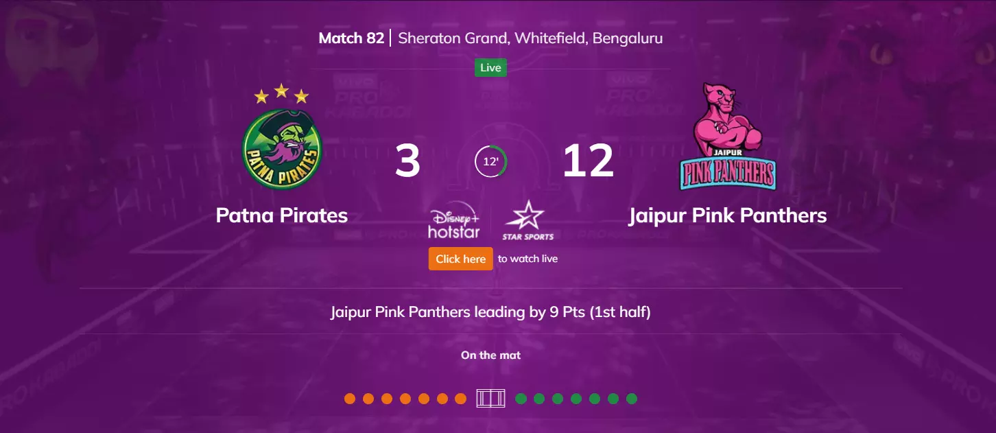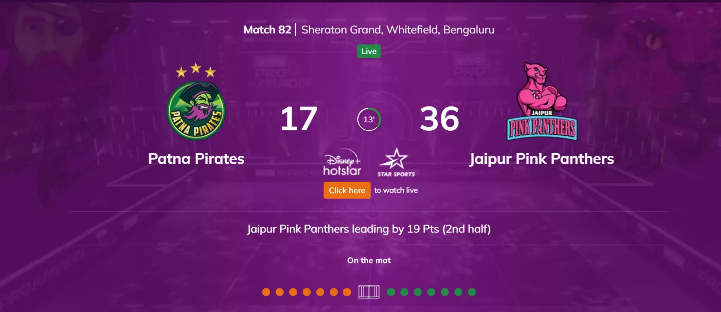 Patna Pirates v/s Jaipur Pink Panthers - 7:30 pm IST