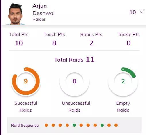 11th Super 10 for Arjun Deshwal and he is yet to be tackled in 11 raids tonight. Pirates are once again staring at an all-out!