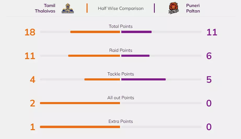 A seven-point lead for Tamil Thalaiavas at halftime, but they are reduced to two men. The Paltan defence has kept them in the contest with some good defence towards the end of that half. Can they inflict an allout?