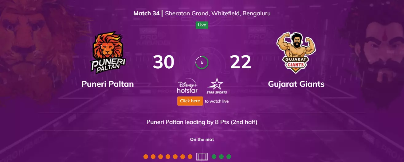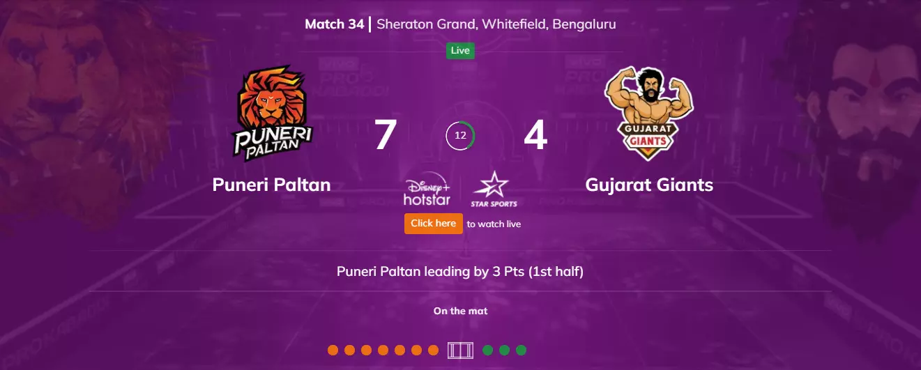 Puneri Paltan v/s Gujarat Giants - 7:30 pm IST
