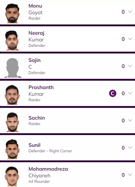 No Manjeet and No Prapanjan either for the Thalaivas in their first 7. Both of them starting from the bench.