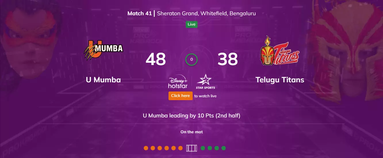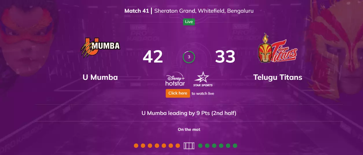 U Mumba v/s Telugu Titans - 8:30 pm IST