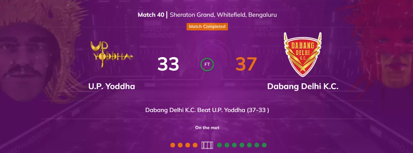 They were trailing by five points at the end of the first half, but have bounced back to pocket the match 36-33. Naveen Goyat, as usual, the star along with Manjeet Chillar hitting the form for Dabang Delhi.