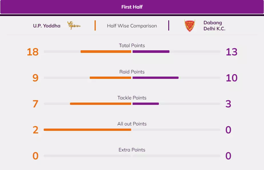 End of the first 20 minutes - 20 minutes dominated by the UP Yoddha. Their defence has been impeccable today, tackling Naveen a whopping five times and Dabang Delhi do not have any answers so far.