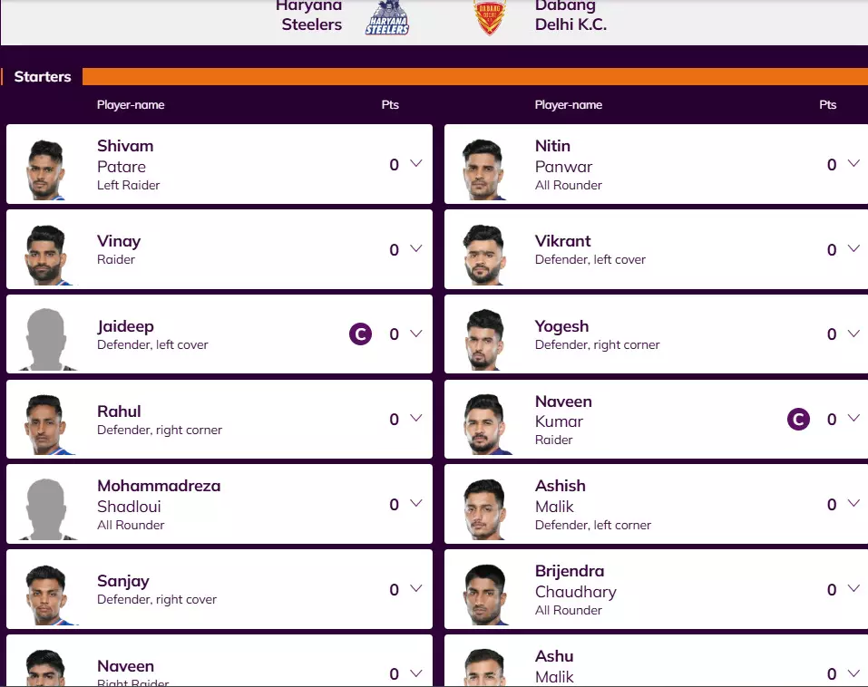 The defender Jaideep will be leading Haryana Steelers while Danag Delhi chose their star raider Naveen Kumar as the captain for the match.