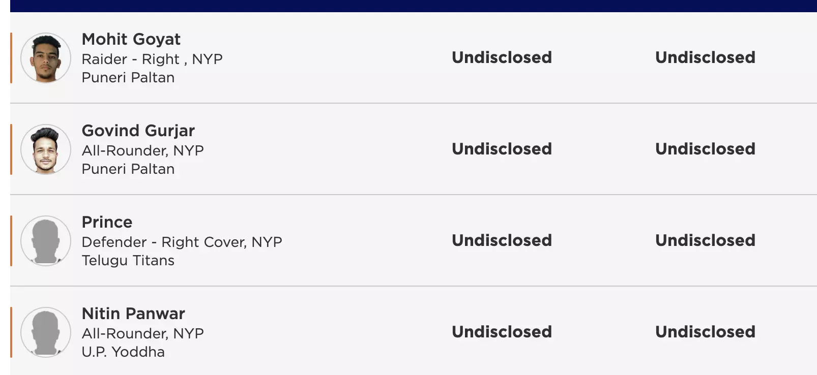 The Season 8 Player Auctions will initiate a grand return of the league after a gap of nearly two years. This Player Auction will see Domestic, Overseas, and New Young Players (NYPs) divided into four categories: Category A, B, C and D. Within each category, the players will be further sub-divided as 'All-Rounders', 'Defenders' and 'Raiders'. Base prices for each of the categories are Category A – INR 30 Lakhs, Category B – INR 20 Lakhs, Category C – INR 10 Lakhs, Category D – INR 6 Lakhs. The total Salary Purse applicable to each Franchisee for its squad for Season 8 is INR 4.4 Crores.