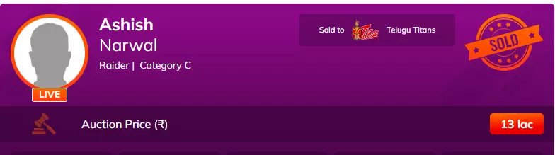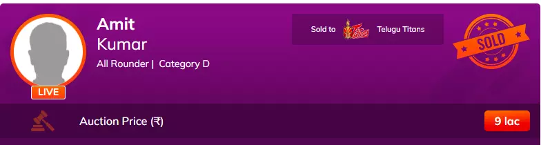 Parshant Kumar is unsold.