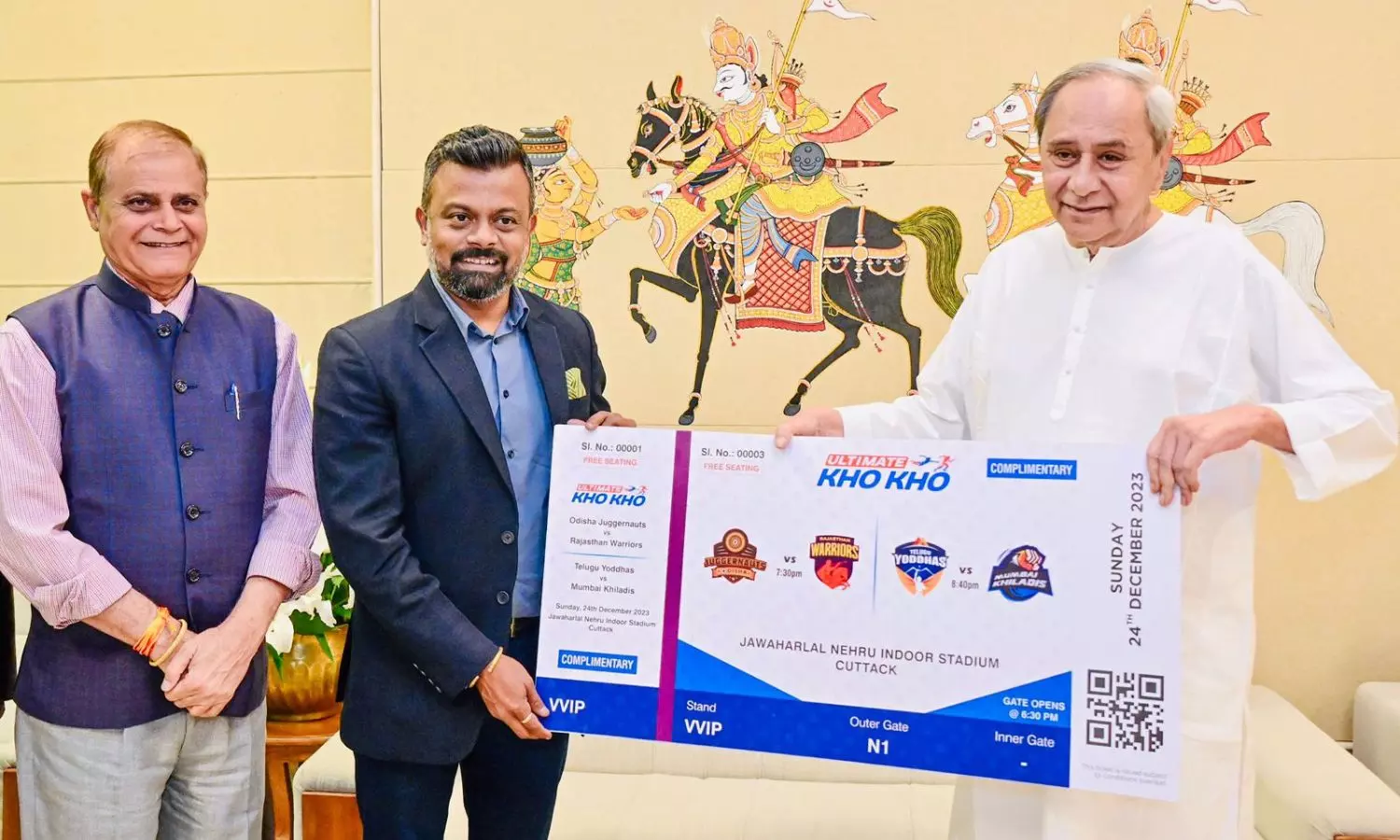 Chief Minister of Odisha, Naveen Patnaik today was presented the first ticket for the Ultimate Kho Kho League Season 2 which will commence from 24 December at the JN Indoor Stadium, Cuttack where Hosts and defending champions Odisha Juggernauts will take on Rajasthan Warriors.