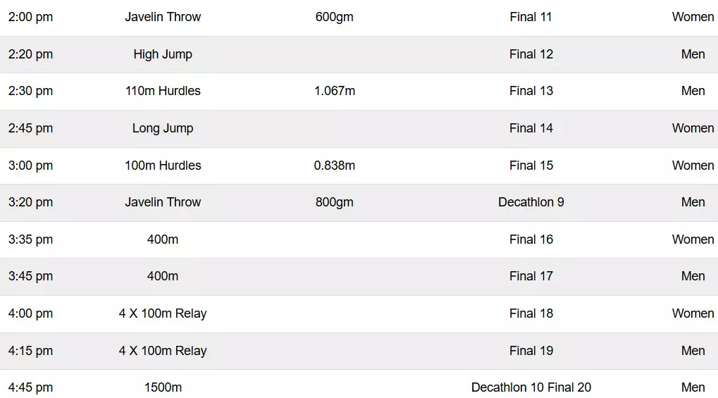 Athletics; The evening session of the Athletics program will begin at 2:00 PM IST