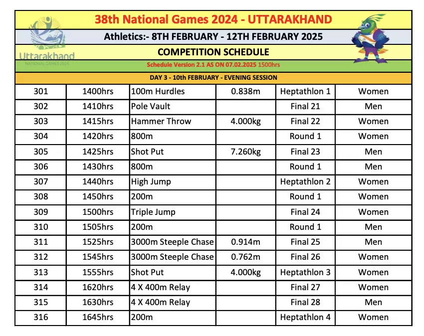 National Games 2025, Day-13 LIVE: Tajinderpal, Yarraji in action