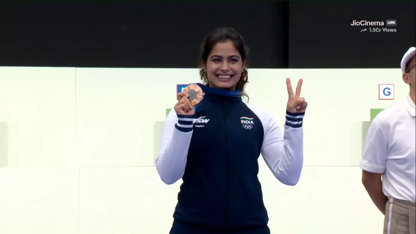 Manu Bhaker wins India's first medal at the Olympic Games Paris 2024. (Photo Credit: Jio Cinema)