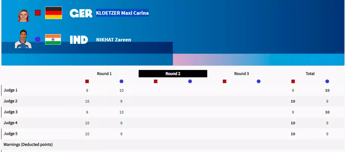 Nikhat dominated the round with punches coming from all around and the German had no answers to it.