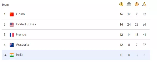 While the Chinese top the table with 16 golds after eight days of the Paris Olympics.