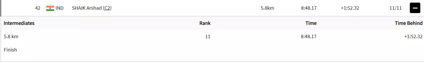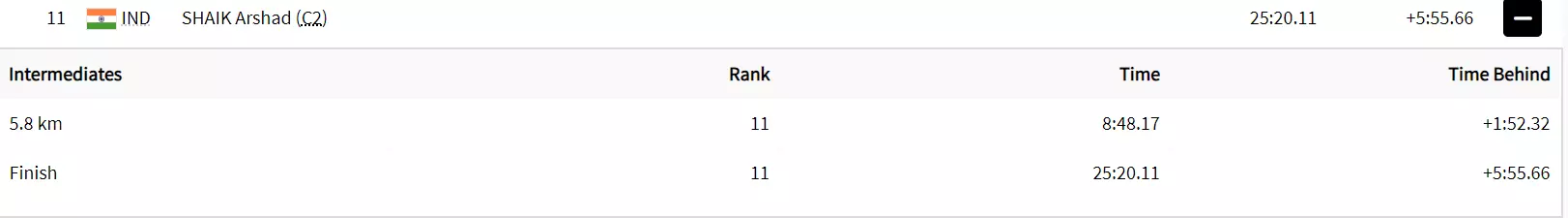 Arshad Shaik completed the race in 11th place with a time of 25:20.11.