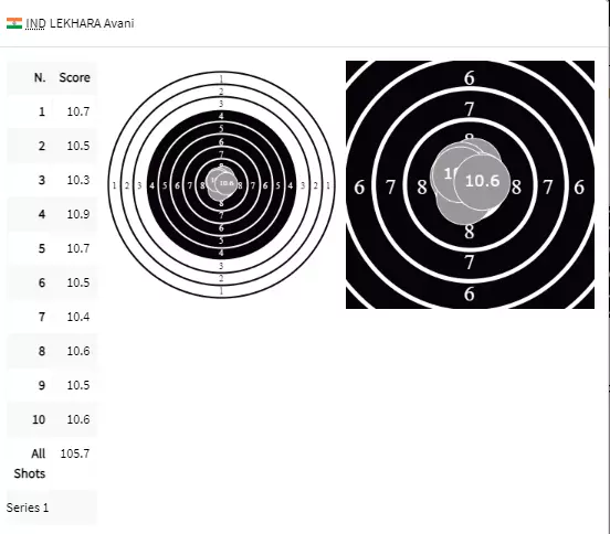 She started with 10.7,10.5,10.3 followed by a bull's eye of 10.9, ending with another 10.7