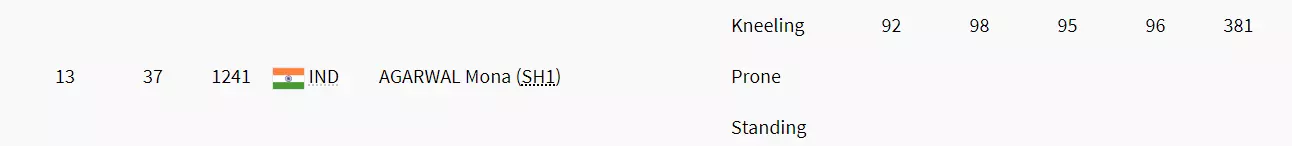Mona also completes her kneeling position with 381 points and is currently sitting at 13th position.