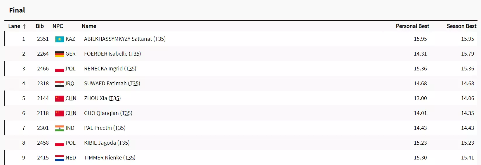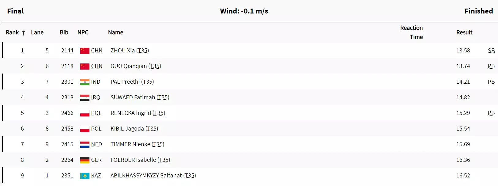 World Bronze medalist, Preethi Pal of India will be in action in the final, sighting her first Paralympic medal on debut.