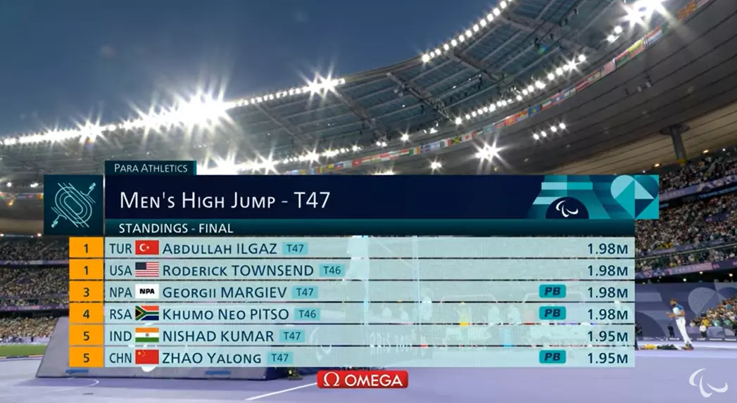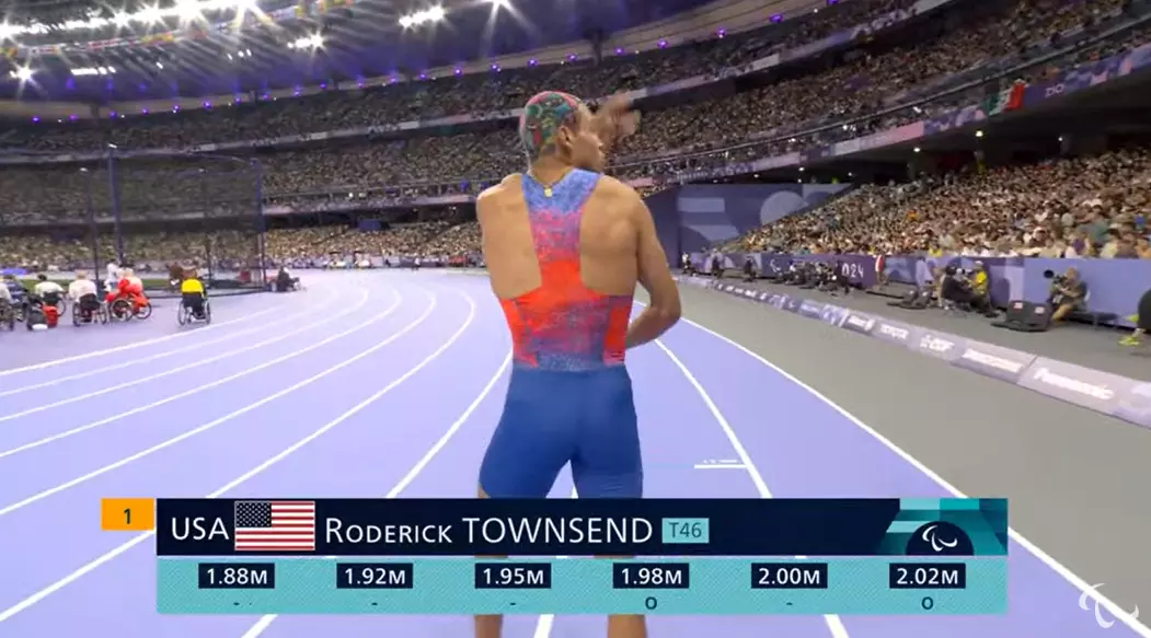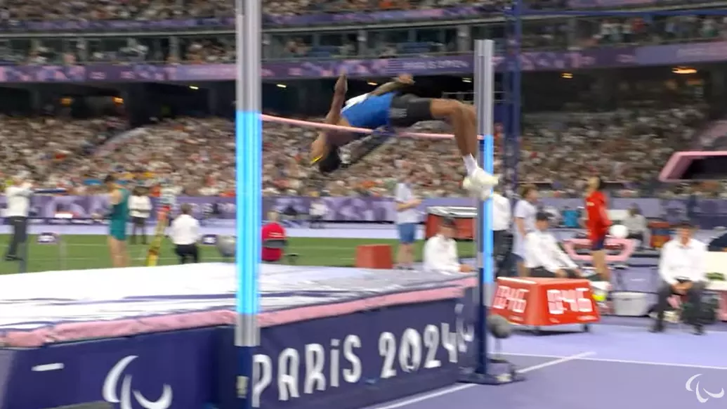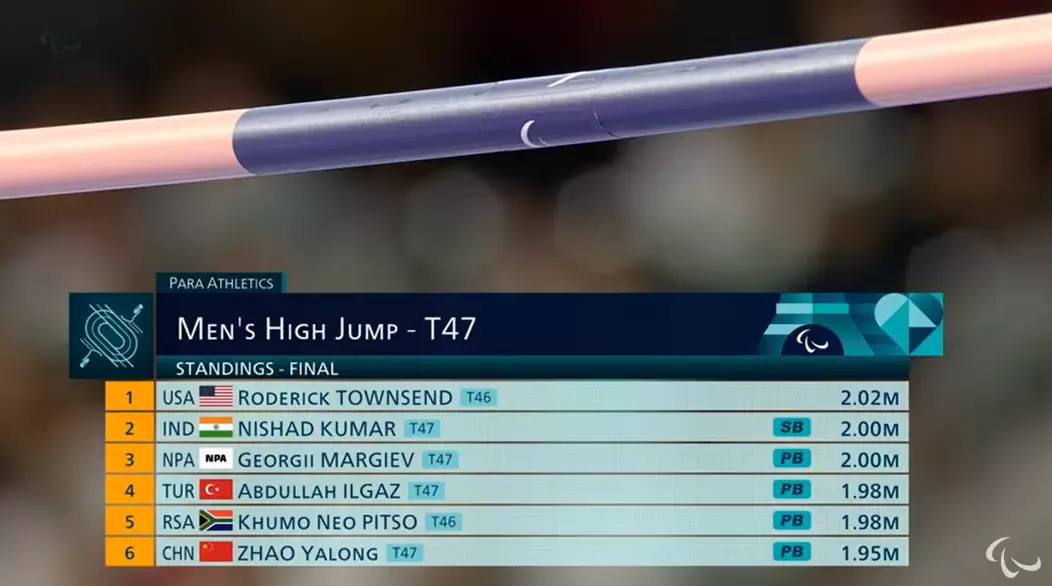 Men's High Jump T47 Finals: Townsend of the U.S has just raised the bar.