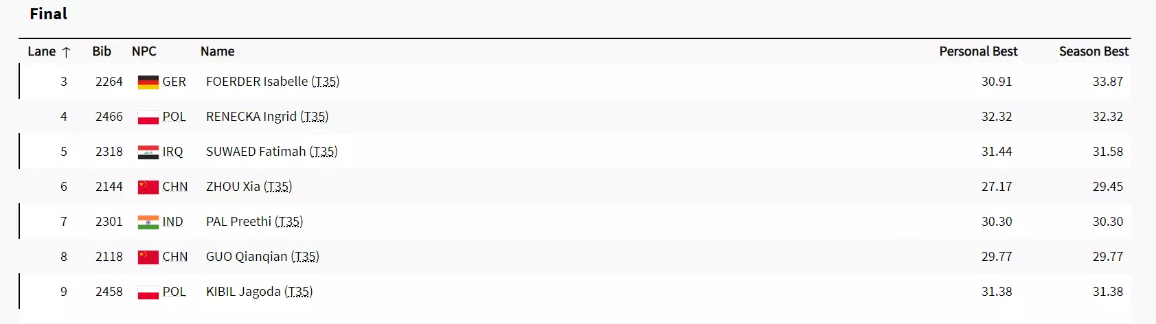 In the women’s 200m T35 final, Preethi Pal clocked a 30.01s to finish in bronze medal position.