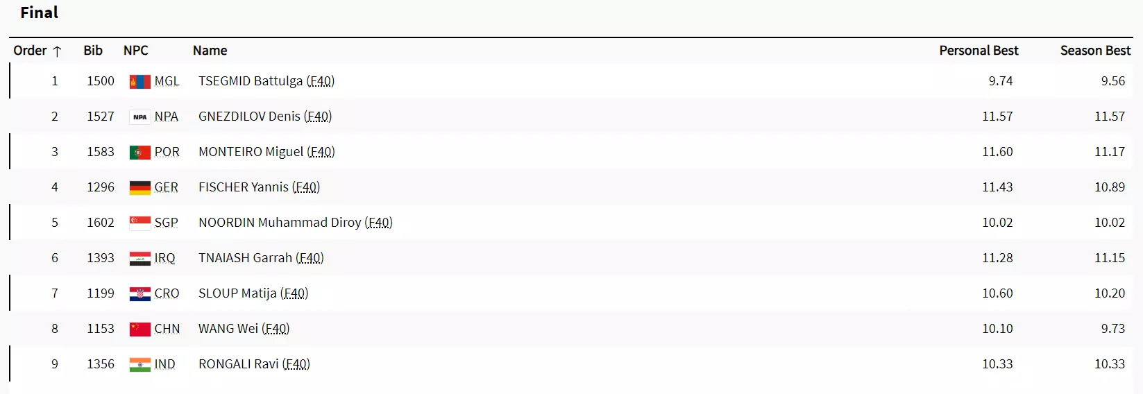 Men's Shot Put - F40 Final