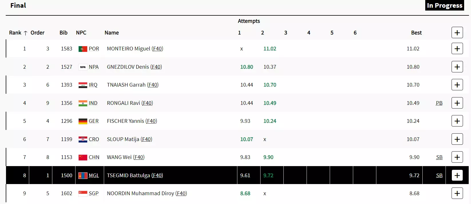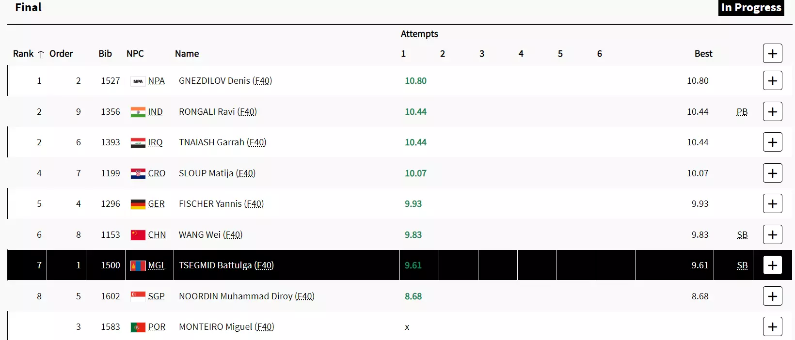 Hello and welcome to our live coverage of the Men's Shot Put - F40 Final