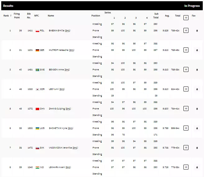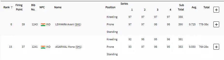 Avani began with a 10, hit 9 on the second shot, and slipped to 8th on the third attempt.
