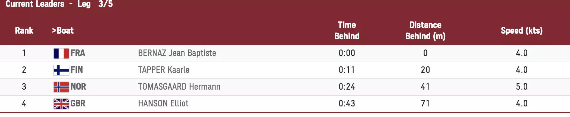 Not too many lead changes in the front but it seems as though other boats are catching up to the pack.