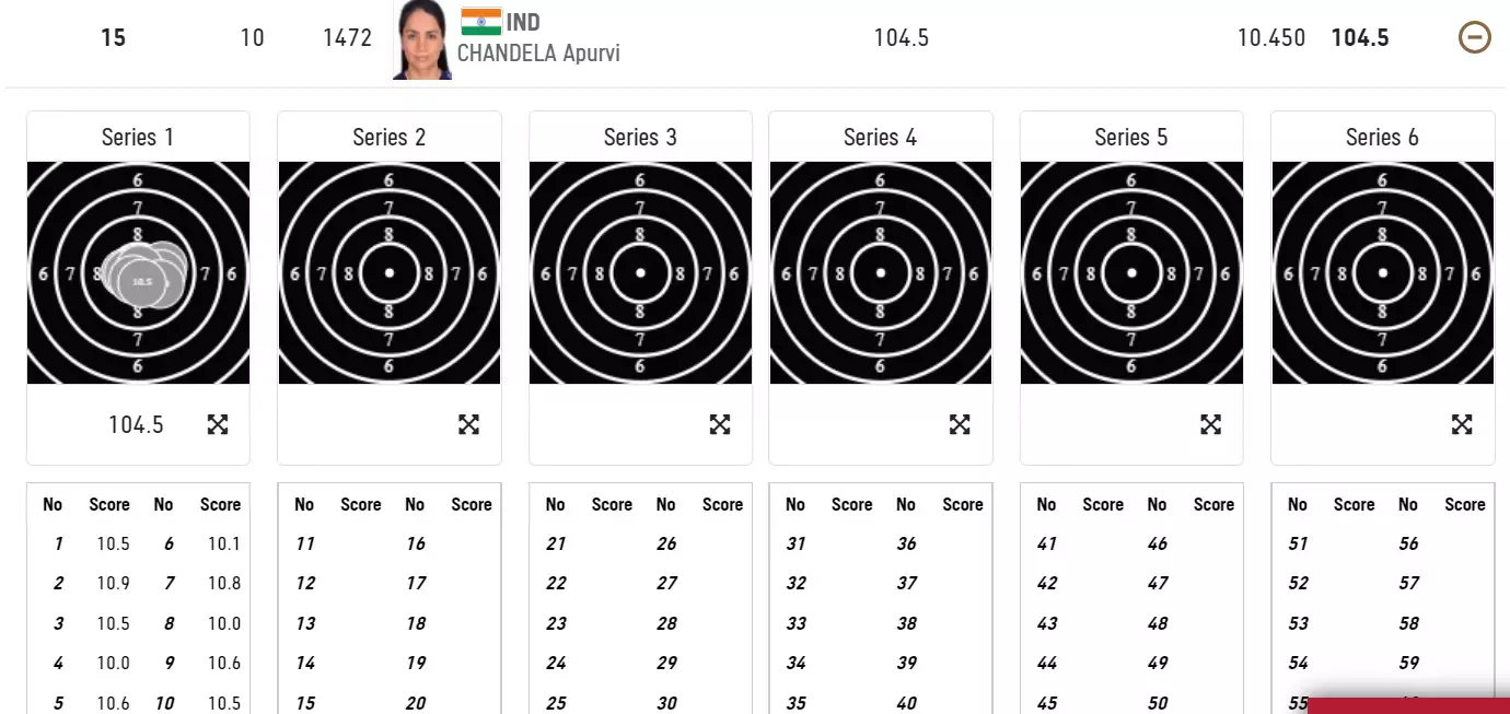 Apurvi Chandela is currently placed 15th with a score of 104.5 in the first series.