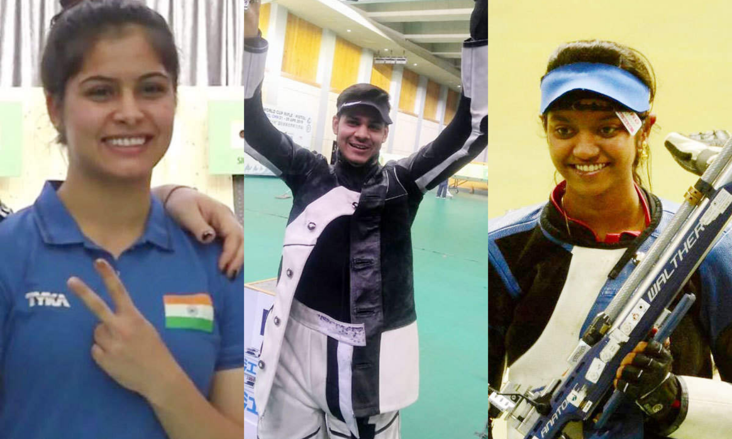 Manu Bhaker, Divyansh Singh Panwar and Elavenil Valarivan| source: timesofindia