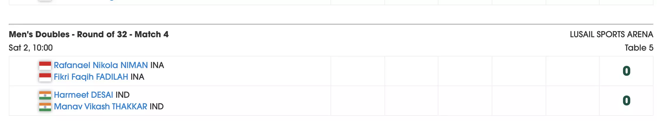 After a historic bronze medal win by the Men's Team at the ongoing 2021 Asian Table Tennis Championships in Doha, it is time for the Indian paddlers to hunt for more glory as the Doubles and Individual events are due to take place today. Sathiyan Gnanasekaran and Sharath Kamal will join forces for doubles, as will Manav Thakkar and Harmeet Desai. The women's half will see Sutirtha Mukherjee pairing up with Ayhika Mukherjee and the fiery duo of Archana Kamath and Sreeja Akula will also open their bid. Other than these ties, there will be individual matches as well featuring these players, as more medals lie in the horizon.