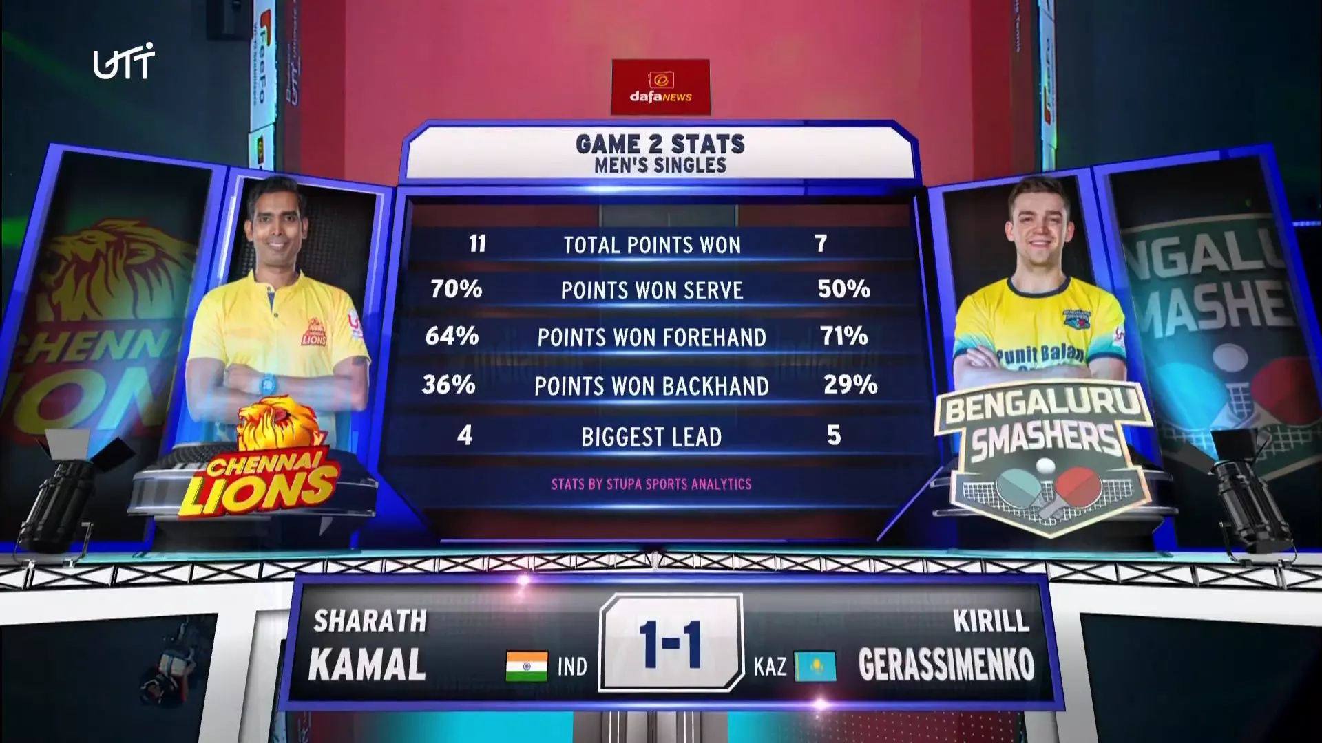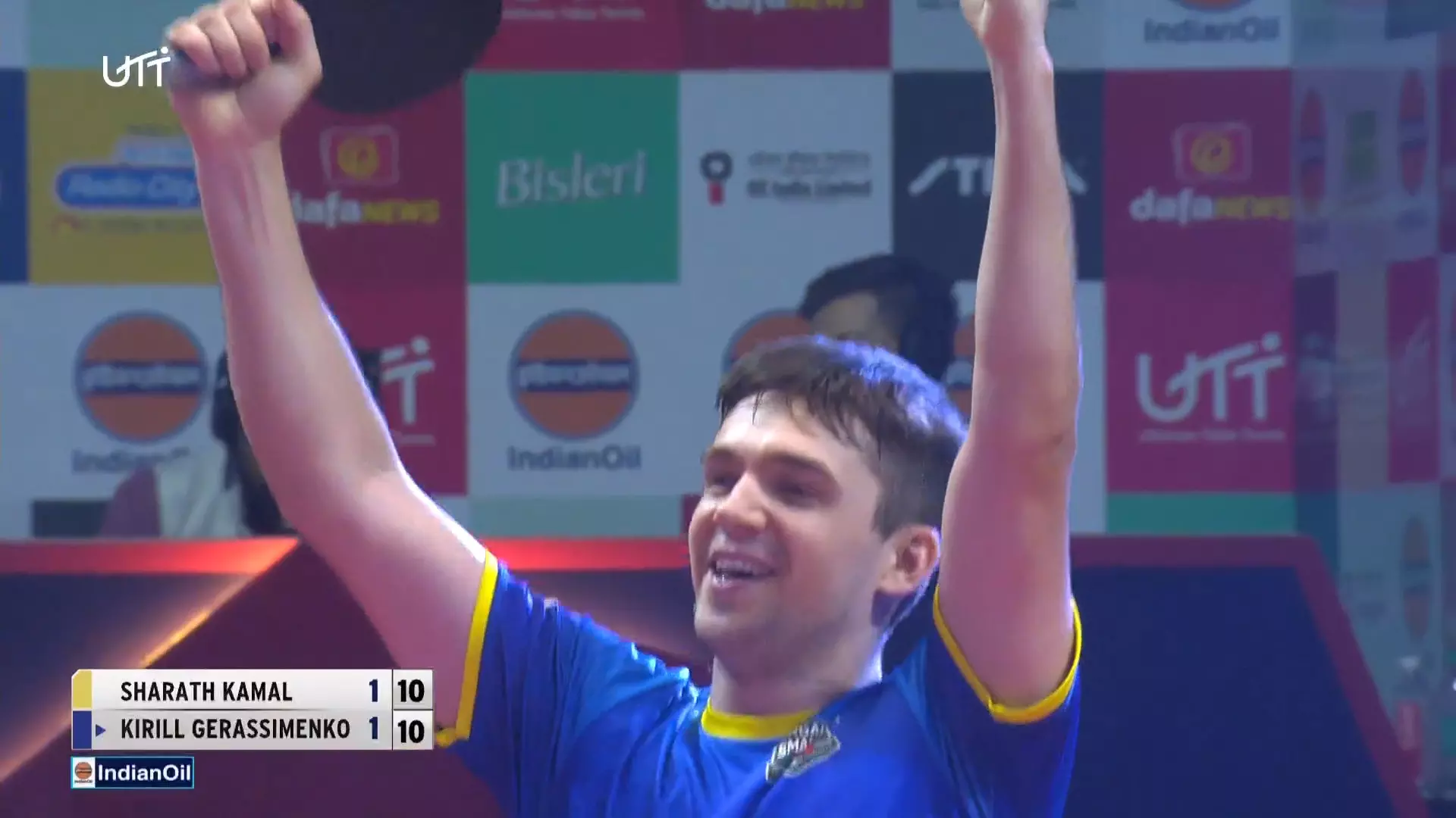 A tight match between both paddlers and Kirill wins the golden point with a score of 11-10 and Bengaluru Smashers are in lead.