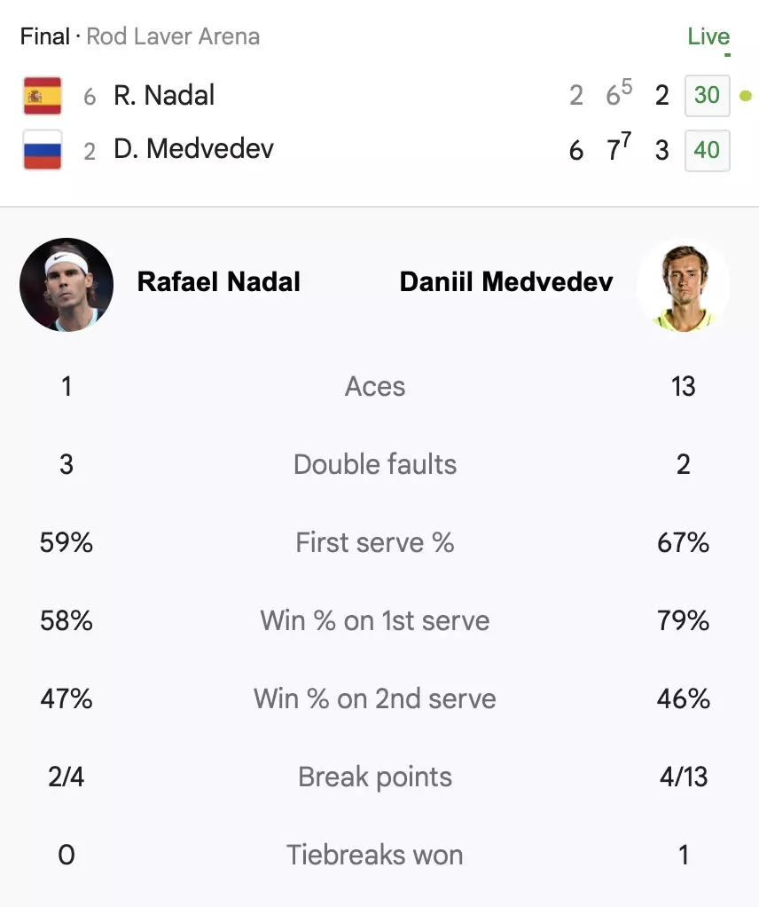 Australian Open Men's Finals LIVE: Rafael Nadal wins 21st Grand Slam title — Blog, Scores, Updates, Results