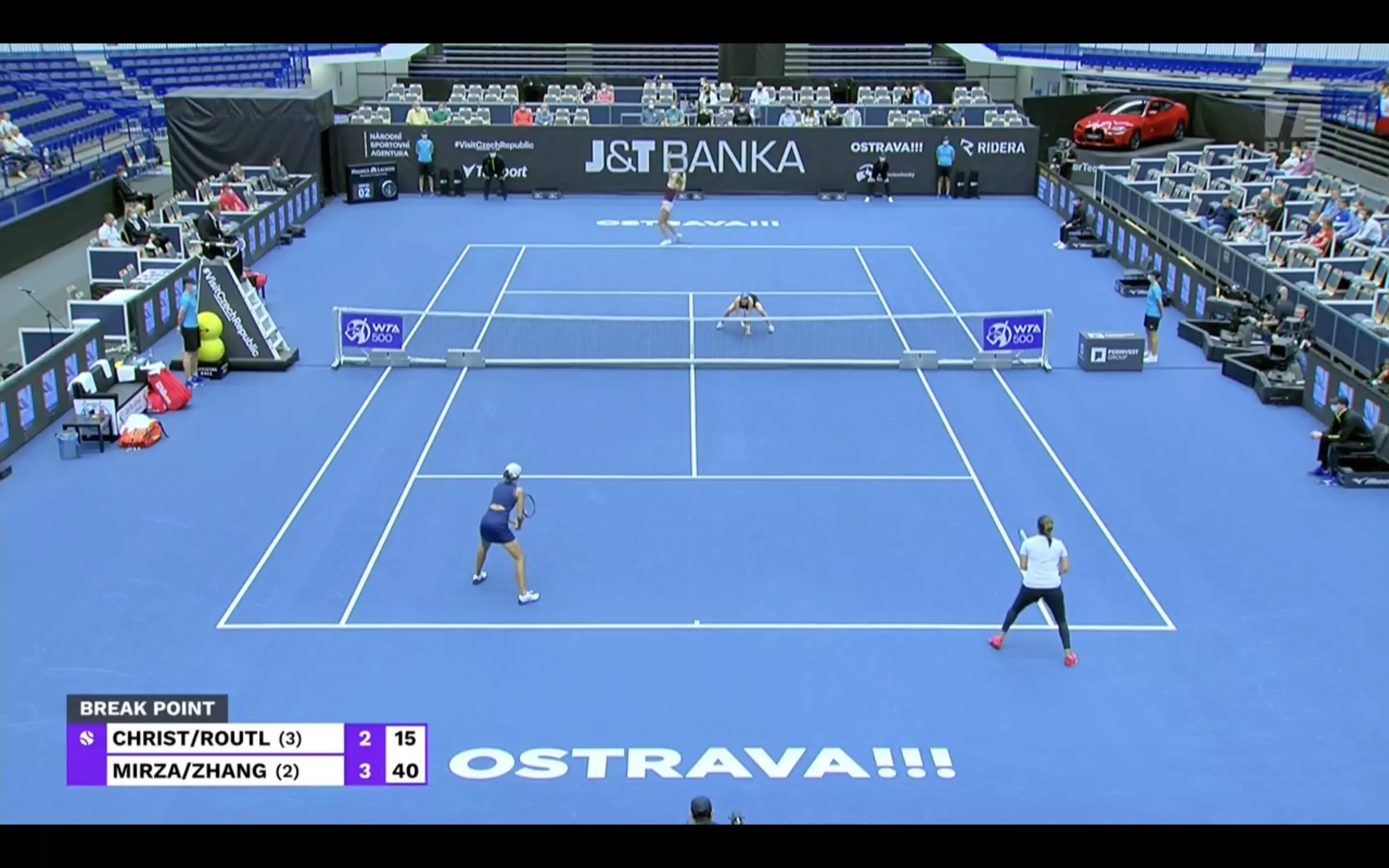 Calm and focussed is the key here as Mirza/Zhang force a break point on the third seeds! A couple of unforced errors from the American-Kiwi pair cost them.