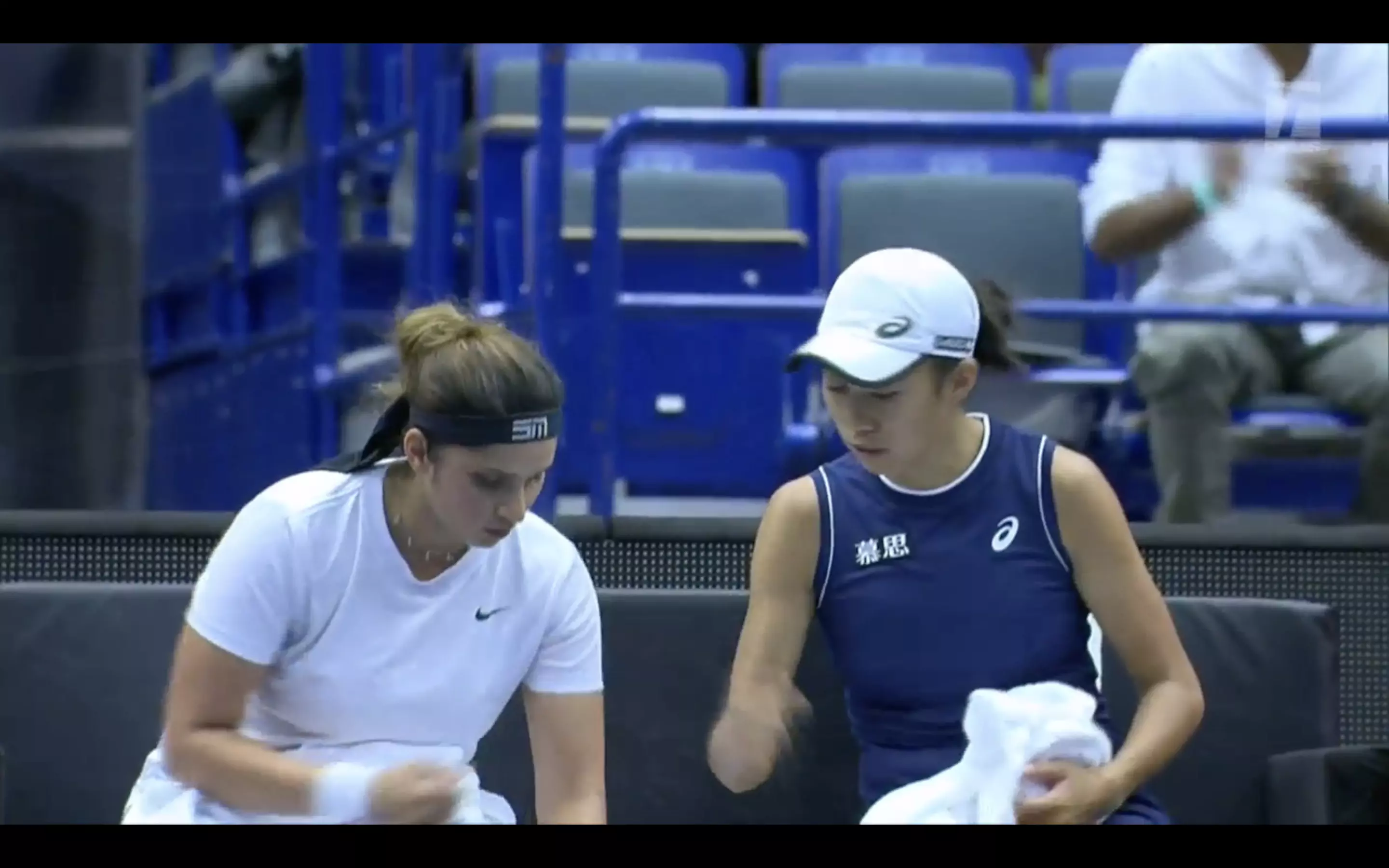 However, the momentum is clearly on Mirza and Zhang's side after the first set win, as they hit winners cheekily every now and then!