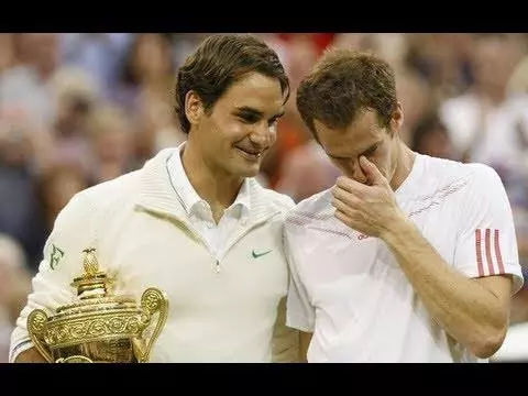 14. Federer with Andy Murray after defeating him in the 2012 Wimbledon final and leaving him winless in the last four finals.