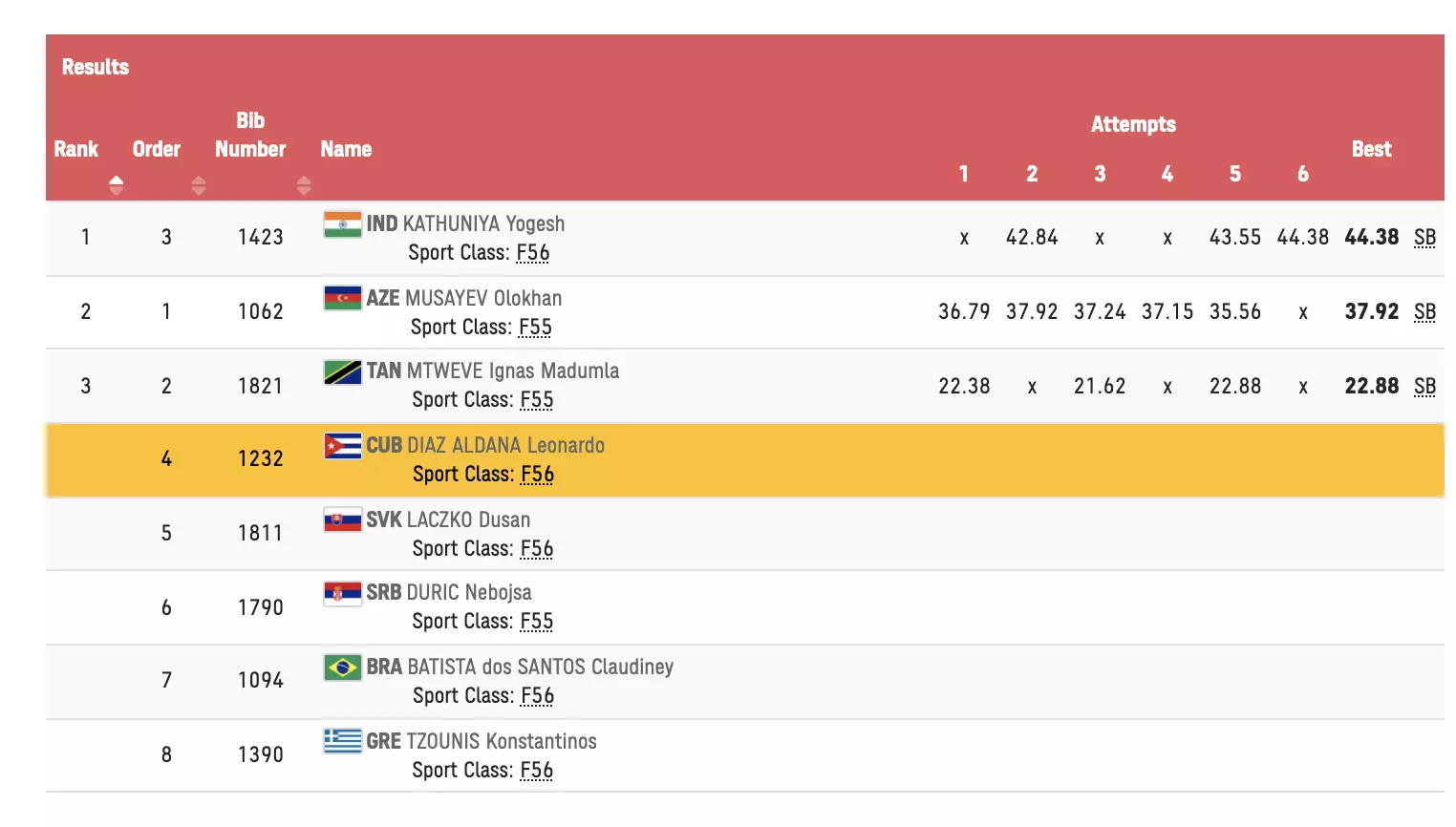 44.38m on his final throw!! Another SB throw from and this puts him well ahead of other competitors for now.